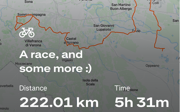 My last race here was my best race this season, maybe even ever. It was a local race, like all of the races I’m doing here. It consisted of 18 laps with a climb in them, a classic Italian I guess. The first 9 laps were longer, and the last 9 laps were shorter, so less rest between the climbs.